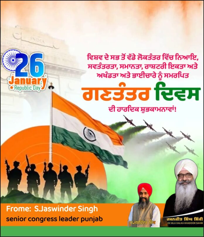 ਸੀਨੀਅਰ ਕਾਂਗਰਸ ਲੀਡਰ ਜਸਵਿੰਦਰ ਸਿੰਘ ਨੇ ਕਿਹਾ ਪੂਰਾ ਦੇਸ਼ ਆਪਣਾ 76ਵਾਂ ਗਣਤੰਤਰ ਦਿਵਸ ਮਨਾ ਰਿਹਾ ਹੈ। ਦੇਸ਼ ਦੀ ਆਜ਼ਾਦੀ ਤੋਂ ਬਾਅਦ ਭਾਰਤ ਇੱਕ ਸੰਵਿਧਾਨਕ ਅਤੇ ਲੋਕਤੰਤਰੀ ਰਾਸ਼ਟਰ ਬਣਨ ਦੇ ਰਾਹ ‘ਤੇ ਤੁਰਿਆ ਸੀ। ਸਾਡੇ ਦੇਸ਼ ਦੇ ਮਹਾਨ ਨੇਤਾਵਾਂ ਤੇ ਬੁੱਧੀਜੀਵੀਆਂ ਨੇ ਮਿਲ ਕੇ ਸੰਵਿਧਾਨ ਤਿਆਰ ਕੀਤਾ, ਜੋ 26 ਜਨਵਰੀ 1950 ਨੂੰ ਲਾਗੂ ਹੋਇਆ। ਭਾਰਤ ਦੇ ਸੰਵਿਧਾਨ ਦੇ ਲਾਗੂ ਹੋਣ ਤੋਂ ਬਾਅਦ ਇਸ ਦਿਨ ਨੂੰ ਗਣਤੰਤਰ ਦਿਵਸ ਵਜੋਂ ਮਨਾਇਆ ਗਿਆ। ਭਾਰਤ ਦਾ ਸੰਵਿਧਾਨ ਦੁਨੀਆ ਦੇ ਸਭ ਤੋਂ ਵੱਡੇ ਅਤੇ ਸਭ ਤੋਂ ਪੁਰਾਣੇ ਲੋਕਤੰਤਰ ਦਾ ਸੰਵਿਧਾਨ ਹੈ। ਦੁਨੀਆ ਦੇ ਕਿਸੇ ਹੋਰ ਸੰਵਿਧਾਨ ਵਿੱਚ ਸਾਡੇ ਸੰਵਿਧਾਨ ਜਿੰਨੀ ਵਿਭਿੰਨਤਾ ਨਹੀਂ ਹੈ।