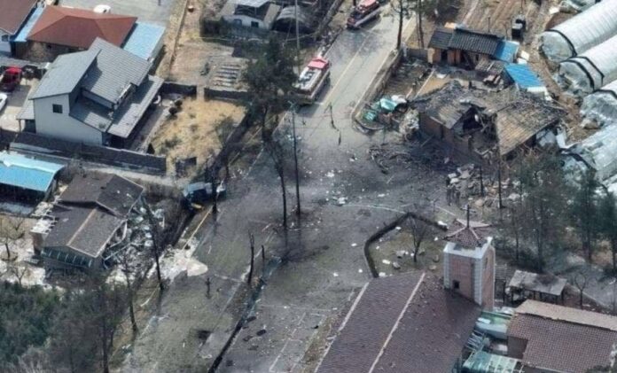 वायुसेना के मुताबिक, घटना गुरुवार (6 मार्च) सुबह 10 बजे की है। फाइटर प्लेन से छोड़े गए 8 बमों में से सिर्फ एक ही फटा। शेष बम डिस्पोज करने की प्रक्रिया सुरक्षा अधिकारी जुटे हुए हैं। उत्तर कोरिया की सीमा के पास पोचियोन शहर में सैन्य अभ्यास के दौरान हुई इस घटना में एक चर्च और मकान क्षतिग्रस्त हो गया है।