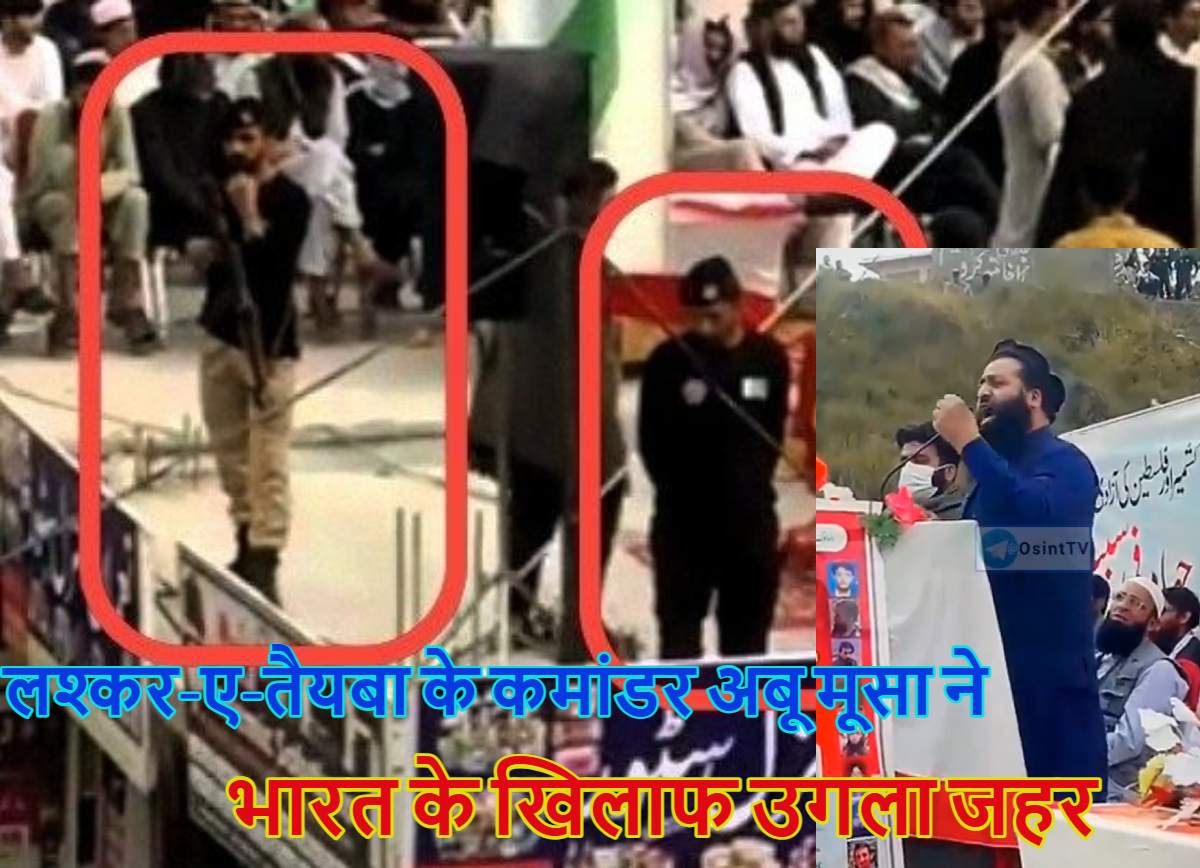 Lashkar-E-Taiba Commander Abu Musa: पाकिस्तान अधिकृत कश्मीर (PoK) के बैठे आतंकियों ने भारत (India) के खिलाफ आग उगली है। भारतीय सेना (Indian Army) और सुरक्षाबलों की कार्रवाई से बौखलाए लश्कर-ए-तैयबा के कमांडर अबू मूसा ने भारत को चेतावनी देते हुए कहा कि जम्मू-कश्मीर में सिर कलम होते रहेंगे और बंदूकें गरजते रहेंगी। इस दौरान जमकर भारत विरोधी नारेबाजी भी हुई।