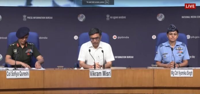 Indian Army Press Conference: ऑपरेशन सिंदूर (Operation Sindoor) के तहत पहलगाम हमले का भारतीय सेना ने बदला लेते हुए बुधवार रात (7 मई 2025) को पाकिस्तान में कई आतंकी ठिकानों पर एयर स्ट्राइक कर तबाह कर दिया। लश्कर-जैश के आतंकी ठिकानों को मिट्टी में मिलाने के बाद भारतीय सेना, इंडिया एयर फोर्स (india air force) और विदेश मंत्रालय प्रेस कॉन्फ्रेंस कर रही है। प्रेस कॉन्फ्रेंस में दो महिला अधिकारियों को शामिल किया गया है। कर्नल सोफिया कुरैशी और विंग कमांडर व्योमिका सिंह भी शामिल हैं।