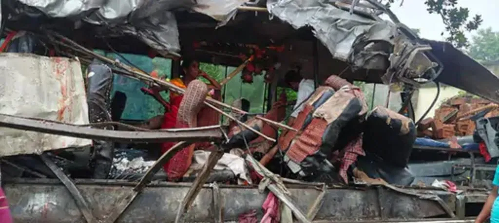 जानकारी के मुताबिक बिहार के गया जी (गया) के रहने कांवड़ियों से भरी बस देवघर स्थित बाबा बैजनाथ धाम में जलाभिषेक करने के बाद कांवरियों से भरी बस दुमका में स्थित बासुकीनाथ मंदिर जलाभिषेक करने के लिए जा रही थी। इसी दौरान मंगलवार सुबह 5 बजे देवघर के मोहनपुर प्रखंड के जमुनिया चौक के पास नवापुरा गांव में ट्रक से आमने-सामने टक्कर हो गई। टक्कर इतनी जोरदार थी कि बस का आधा हिस्सा पूरी तरह से धंस गया। कांवड़ियों के झोले और सामान बस में लटके दिख रहे हैं।