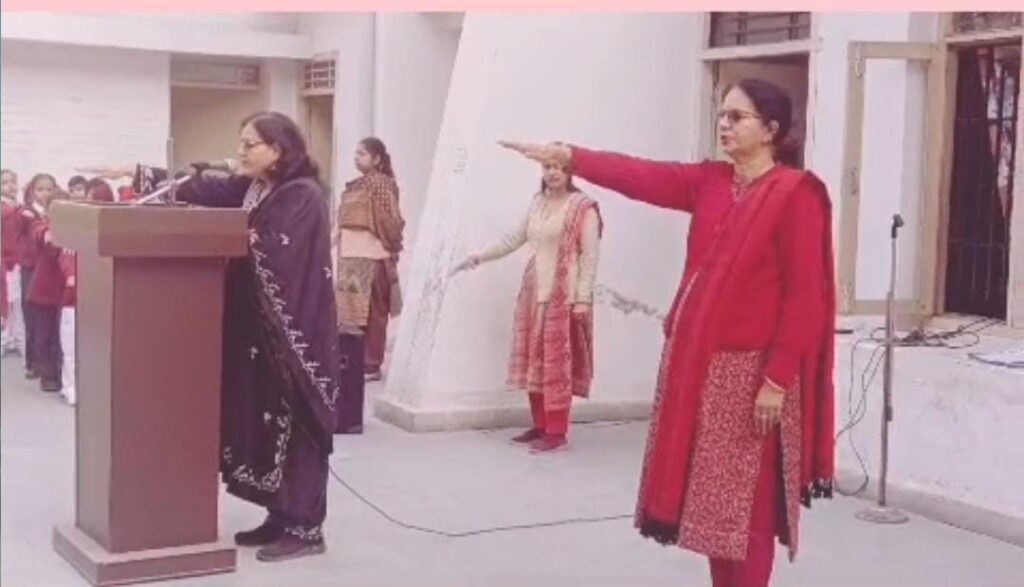 संविधान दिवस पर बच्चों को दिलाई शपथ)
