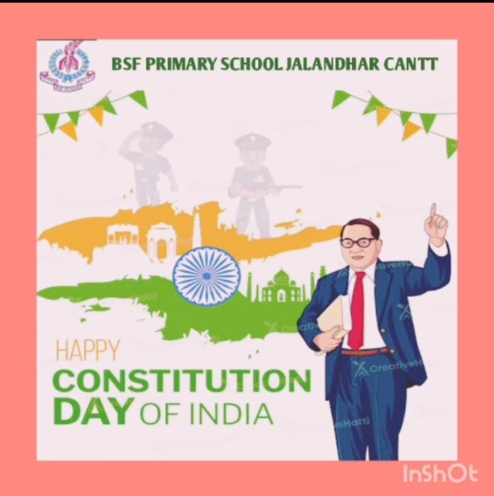बीएसएफ प्राइमरी स्कूल जालंधर कैंट में स्कूल के बच्चों ने संविधान दिवस मनाया, जिसमें उन्होंने संविधान के महत्व और इसके निर्माता डॉ. भीमराव अंबेडकर के बारे में जानकारी प्राप्त की। इस अवसर पर बच्चों ने संविधान की प्रस्तावना का पाठ किया और संविधान से संबंधित विभिन्न गतिविधियों में भाग लिया। प्रिंसिपल रंजना डोगरा के भाषण से सभी बच्चे काफी प्रोत्साहित हुए। प्रिंसिपल रंजना डोगरा ने बच्चों को बाबा साहेब के बताए हुए मार्ग पर चलने की प्रेरणा भी दी
