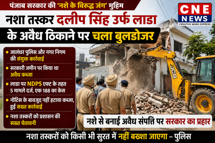 पंजाब में नशे के खिलाफ चल रहे अभियान के तहत जालंधर में प्रशासन ने एक बार फिर सख्ती दिखाते हुए बड़ी कार्रवाई को अंजाम दिया। पुलिस और नगर निगम की संयुक्त टीम ने एक कुख्यात नशा तस्कर के कब्जे वाले अवैध ढांचे को पूरी तरह ढहा दिया। इस कार्रवाई के बाद पूरे इलाके में सनसनी फैल गई और लोगों के बीच प्रशासन की सख्ती को लेकर चर्चा तेज हो गई।
